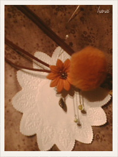 ラビットファーとお花のヒモ