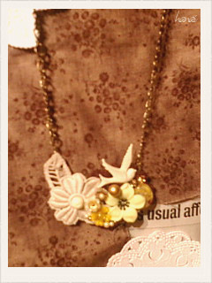 トリさんとレーシーお花のネックレス